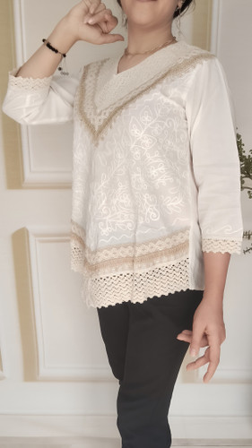 شومیز حریر کرواتی وارداتی رنگ کرم سبک و خنک