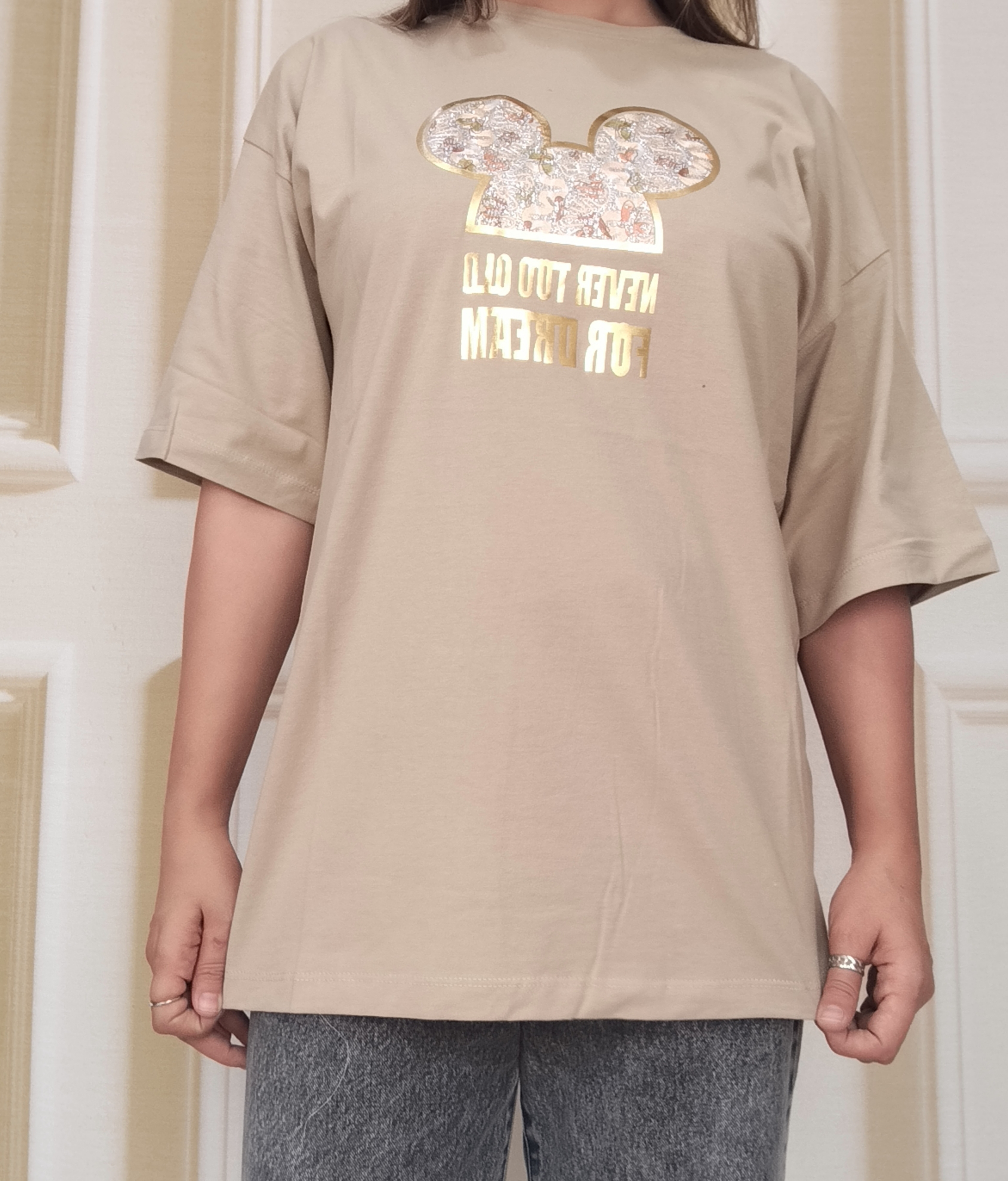 ناموجودتیشرت لانگ نخ پنبه رنگ نسکافه ای طرح DREAM