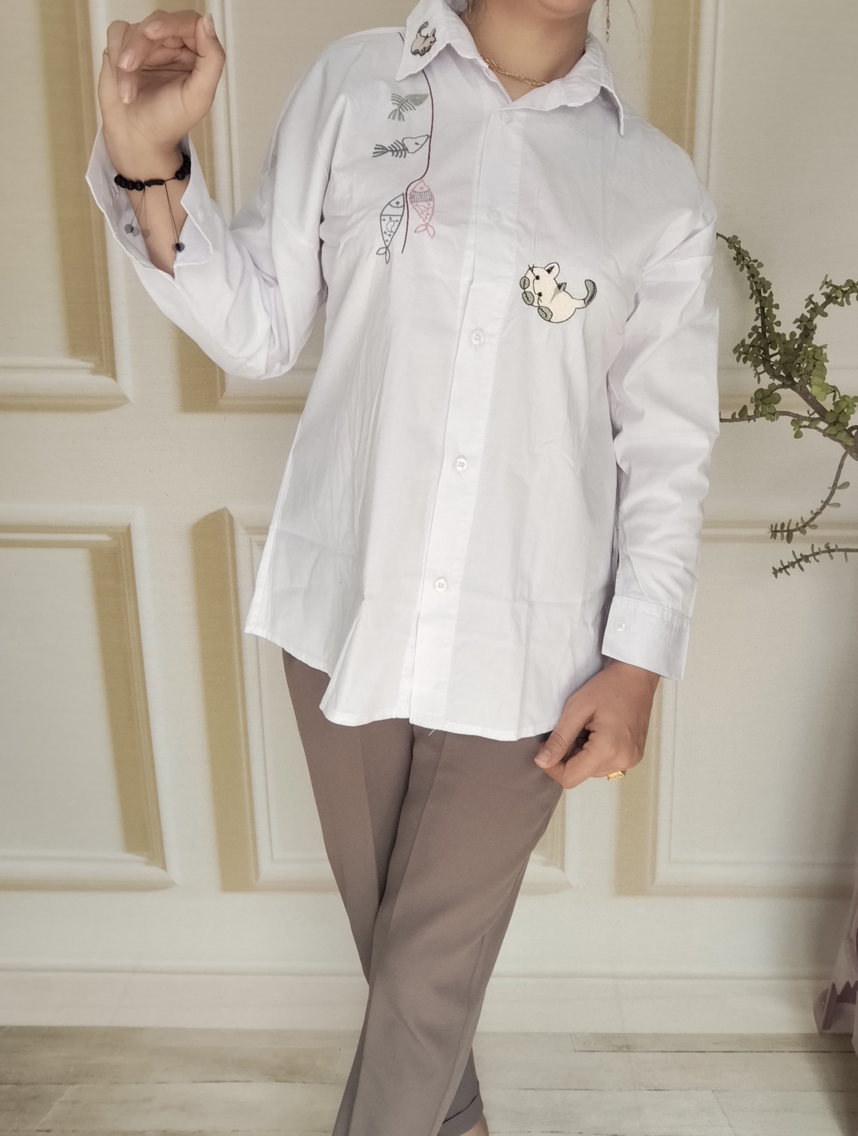 ناموجودتیشرت مانتو دخترانه طرح پیشی بازیگوش