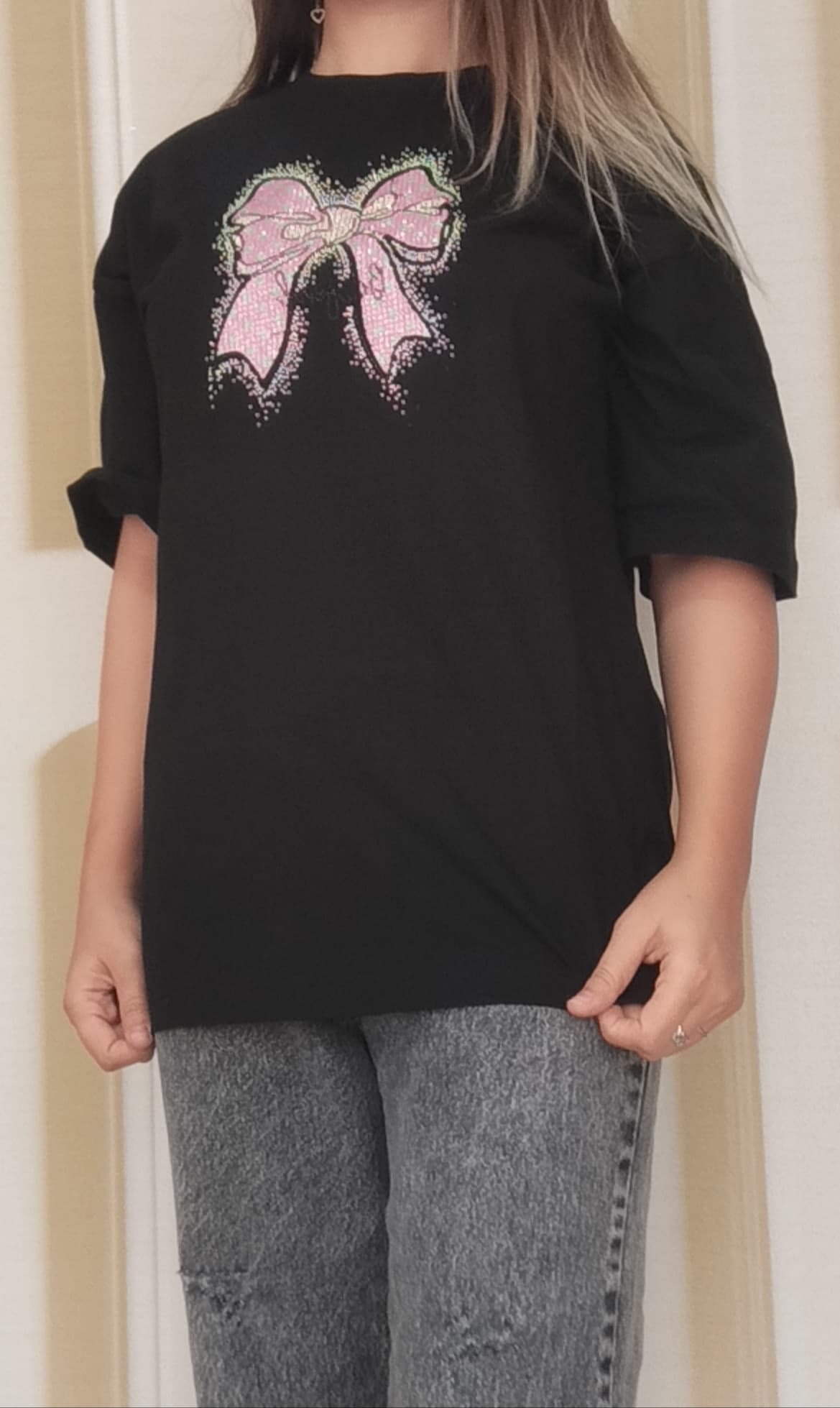 ناموجودتیشرت زنانه لانگ نخ پنبه طرح پاپیون