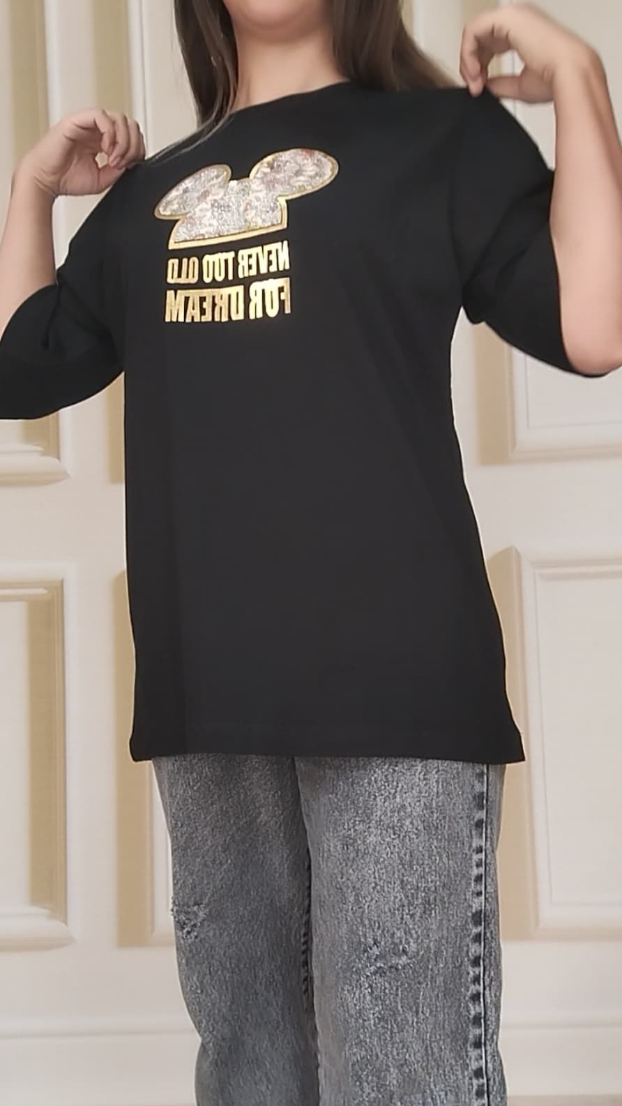 تیشرت زنانه لانگ نخ پنبه طرح MIRKEyS