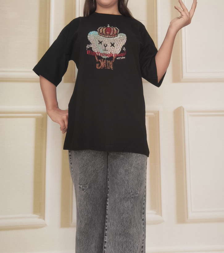 تیشرت زنانه لانگ نخ پنبه طرح کینگ فری سایز | T-Shirt King Design Free Size