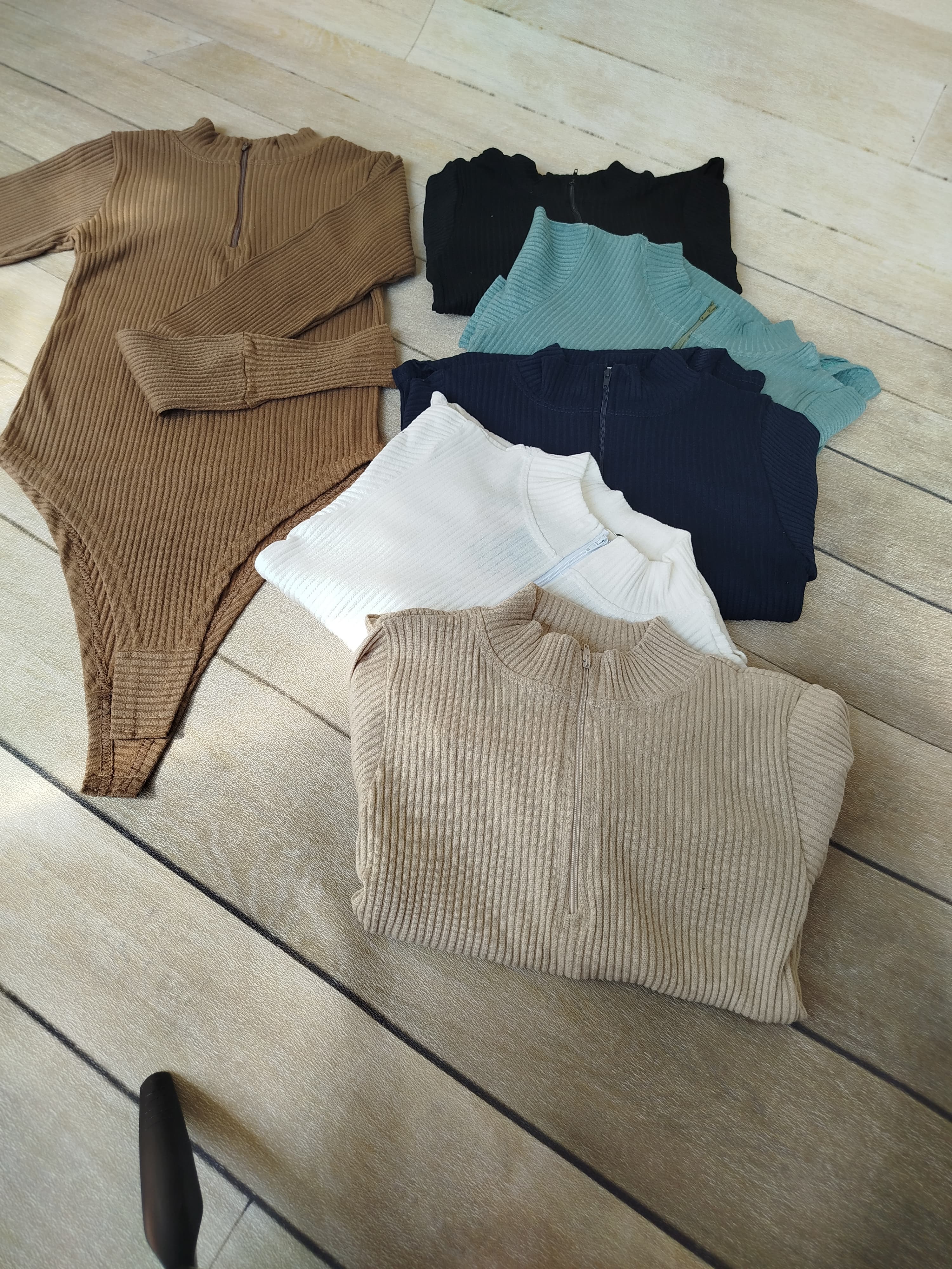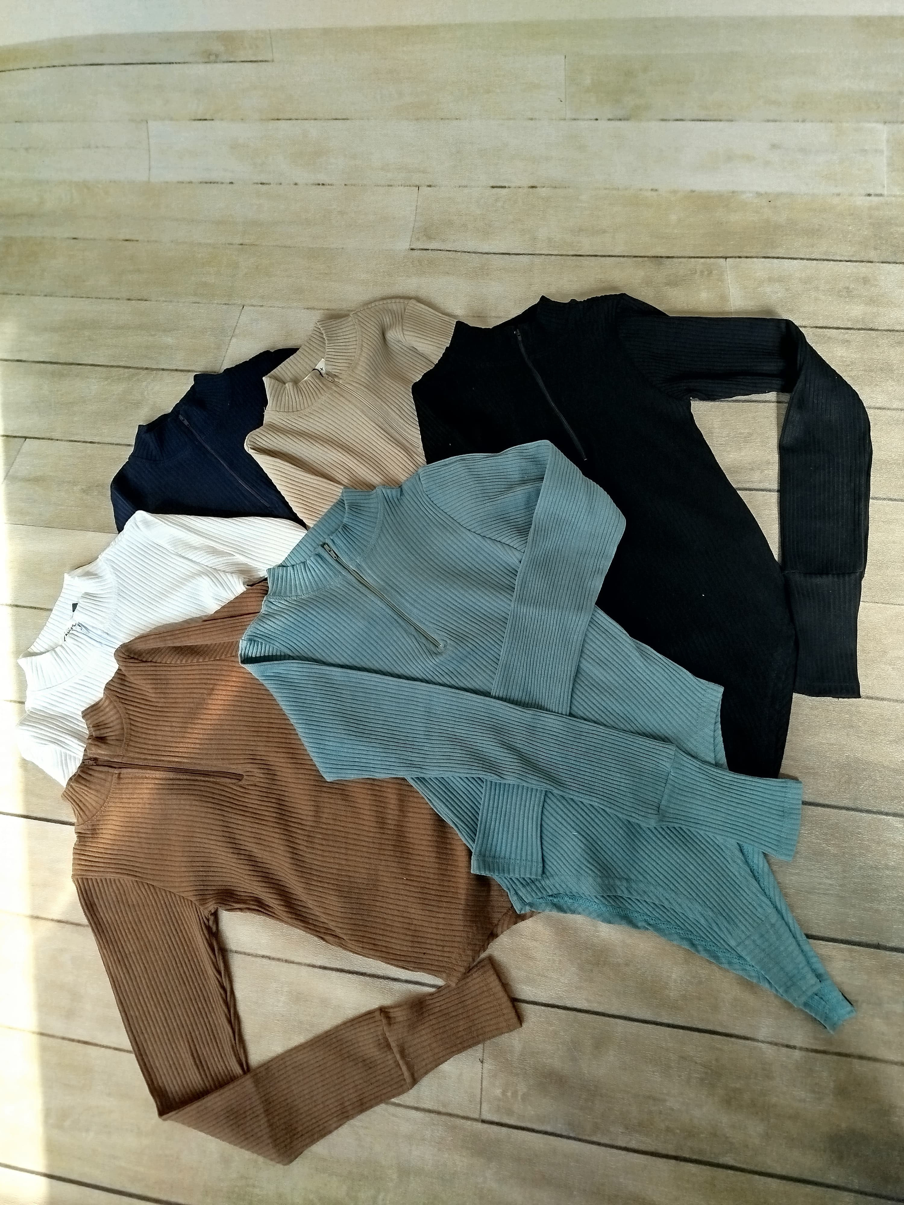بادی یقه هفت سانت زیپی زنانه پلیسه پنبه آستین فینگردار